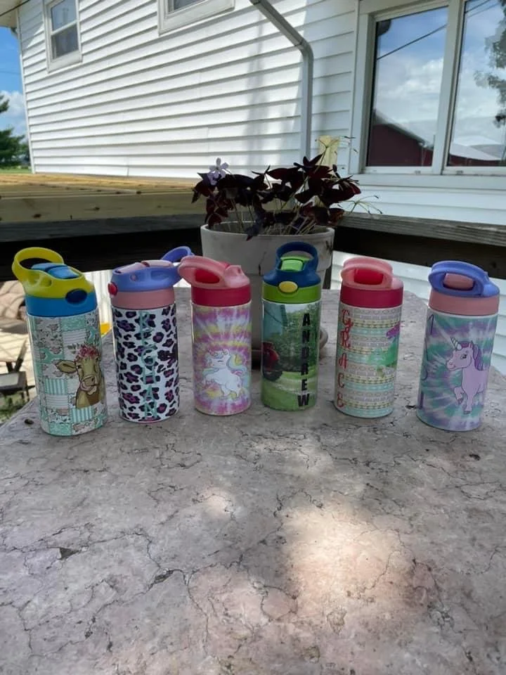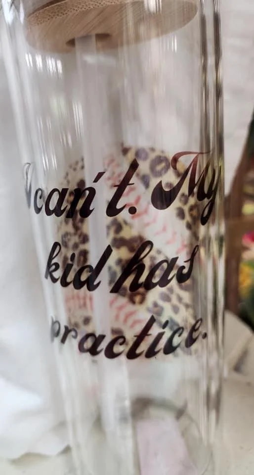 Traditional Threads is able to customize glass and metal tumblers and water bottles! Customize them with your business logo, a custom saying, or one of our ready to go prints for teachers, cow lovers, for the plant lover, and more!